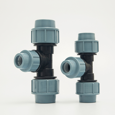 אביזרי דחיסה מחדש pp פלסטיק שסתומים ומסננים טי פליז 90 מ "מ